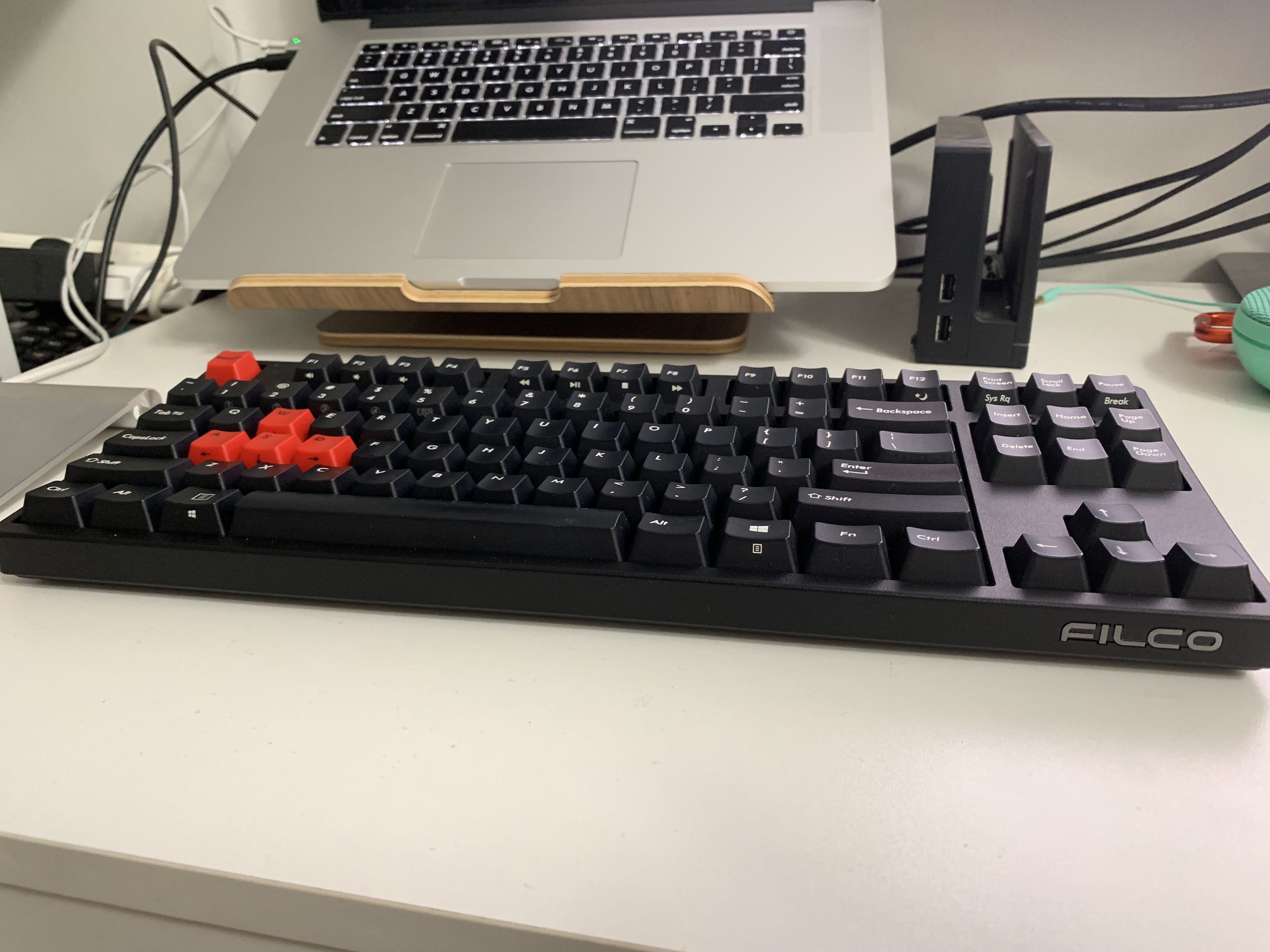 67与87的区别就是键数,开发必备的功能键必须使用复合键来实现,这样本身就造成了效率的地下,相对的体积优势,和重量优势,在开发面前已经不那么重要。经过一阵思考,最终决定出手更换键盘。
